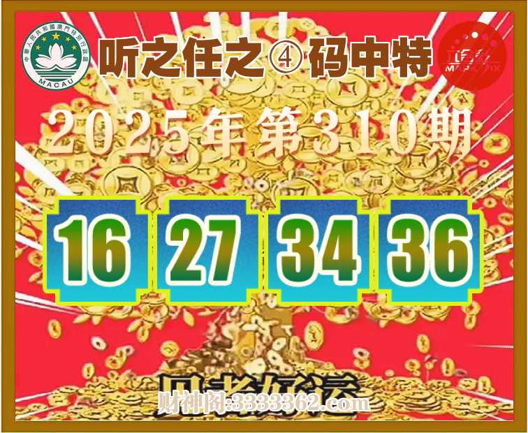 310期:『听之任之』 🏇④码中特🏇【16.27.34.36】开:16