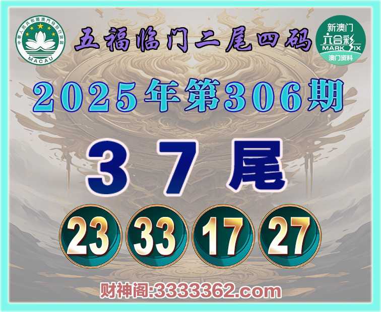 306期:《五福临门》 🪢二尾四码🪢【37尾主:23.33.17.27】开:17