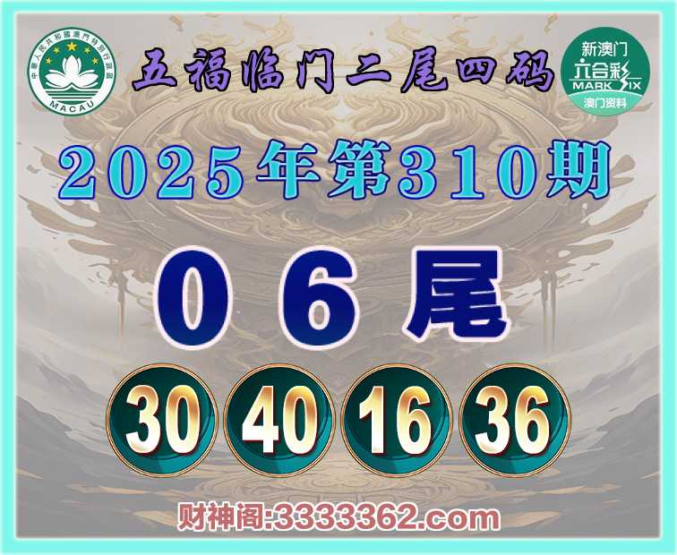 310期:《五福临门》 🪢二尾四码🪢【06尾主:30.40.16.36】开:16