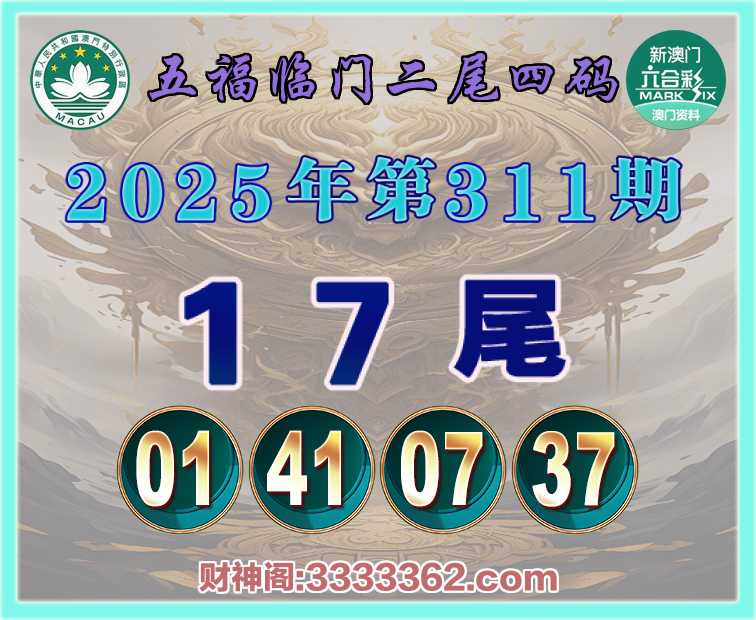 311期:《五福临门》 🪢二尾四码🪢【17尾主:01.41.07.37】开:37