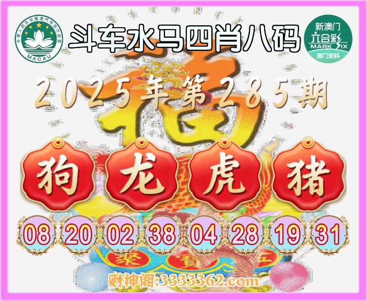 285期:【斗车水马】 🧏‍♀️四肖八码🧏‍♀️【狗龙虎猪】开:马24
