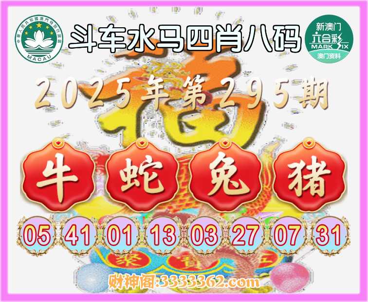 295期:【斗车水马】 🧏‍♀️四肖八码🧏‍♀️【蛇兔猪】开:牛05