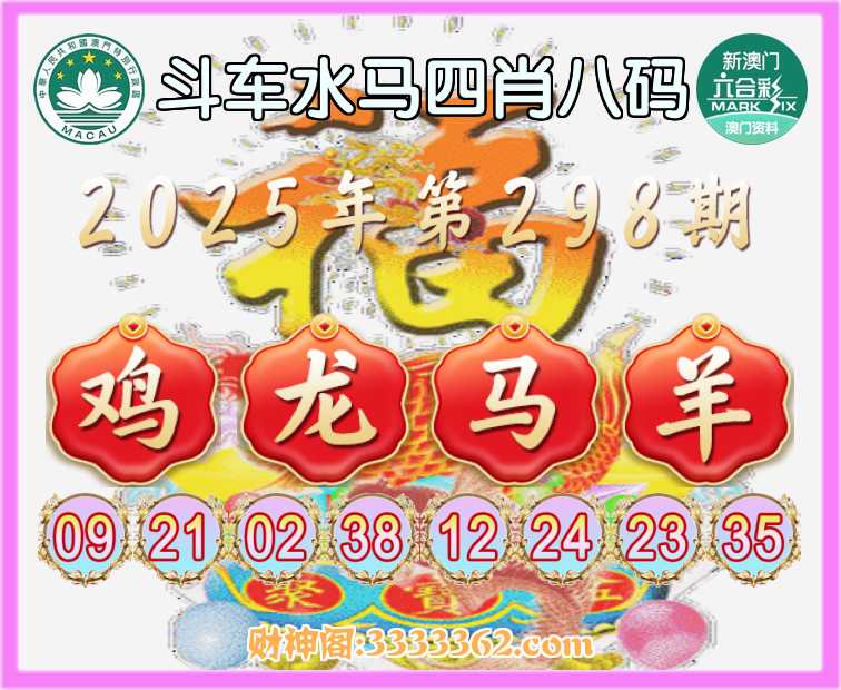 298期:【斗车水马】 🧏‍♀️四肖八码🧏‍♀️【鸡龙马】开:羊23
