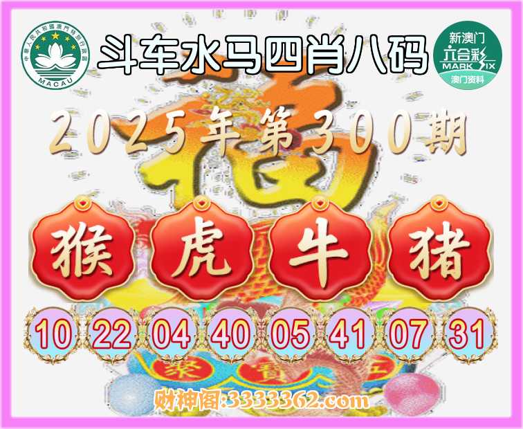 300期:【斗车水马】 🧏‍♀️四肖八码🧏‍♀️【猴牛猪】开:虎40