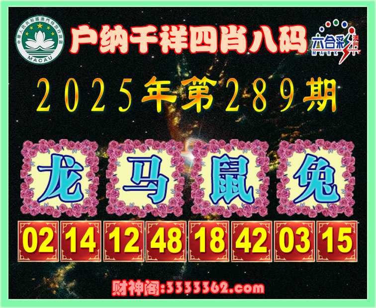 289期:《户纳千祥》 🏇四肖八码🏇【龙马兔】开:鼠42
