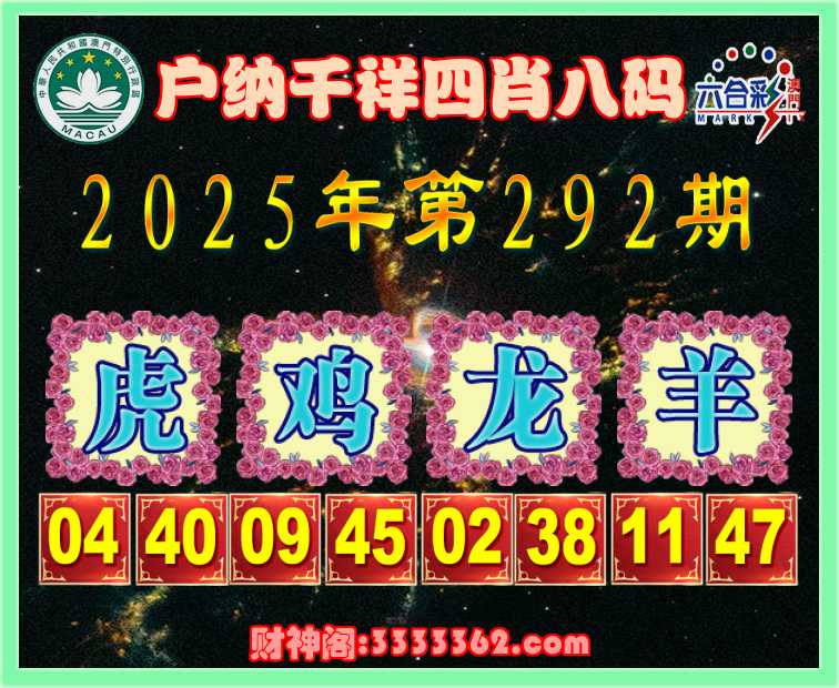 292期:《户纳千祥》 🏇四肖八码🏇【虎鸡羊】开:龙02
