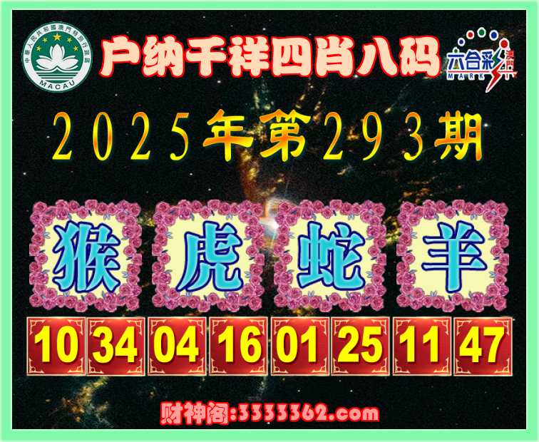 293期:《户纳千祥》 🏇四肖八码🏇【猴虎蛇】开:羊47