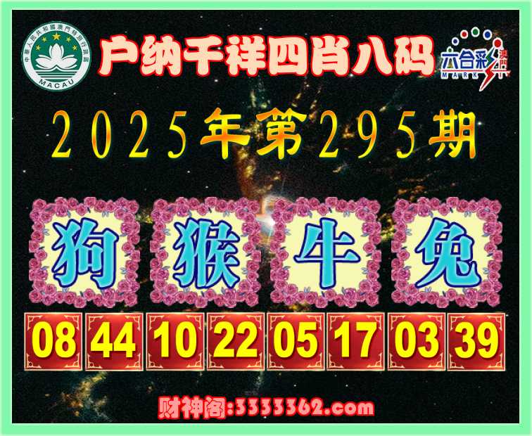 295期:《户纳千祥》 🏇四肖八码🏇【狗猴兔】开:牛05