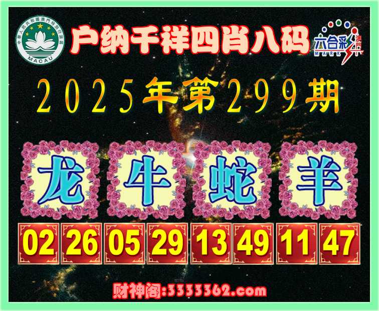 299期:《户纳千祥》 🏇四肖八码🏇【龙牛羊】开:蛇49