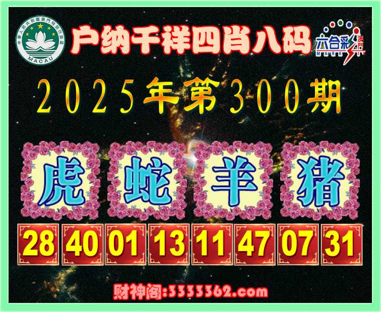 300期:《户纳千祥》 🏇四肖八码🏇【蛇羊猪】开:虎40