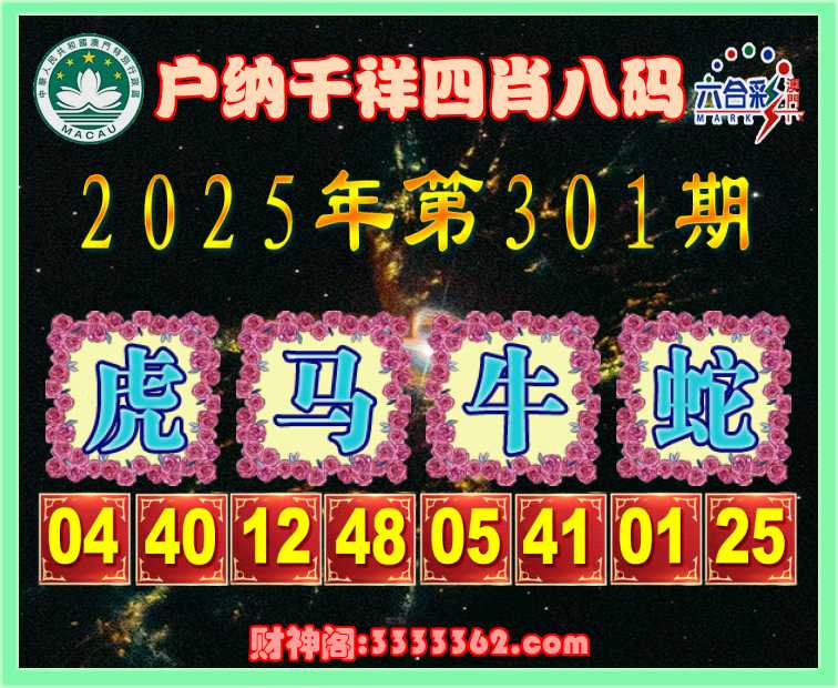 301期:《户纳千祥》 🏇四肖八码🏇【虎马蛇】开:牛05