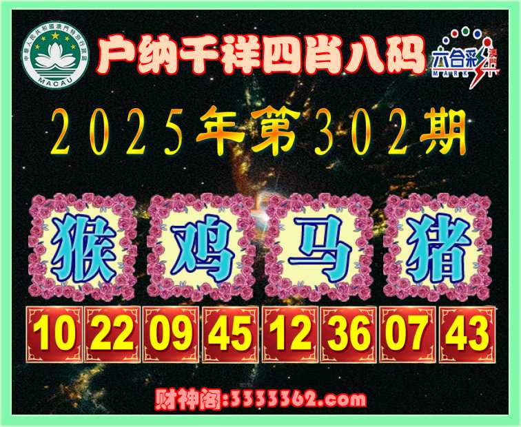 302期:《户纳千祥》 🏇四肖八码🏇【鸡马猪】开:猴22