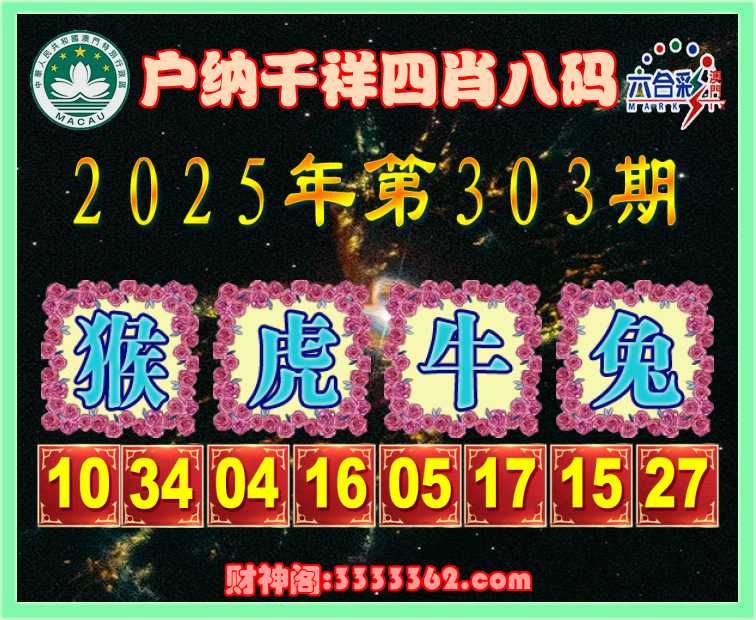 303期:《户纳千祥》 🏇四肖八码🏇【猴虎牛】开:兔15