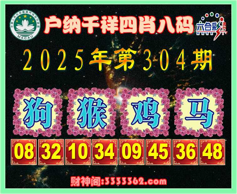 304期:《户纳千祥》 🏇四肖八码🏇【狗猴鸡】开:马48