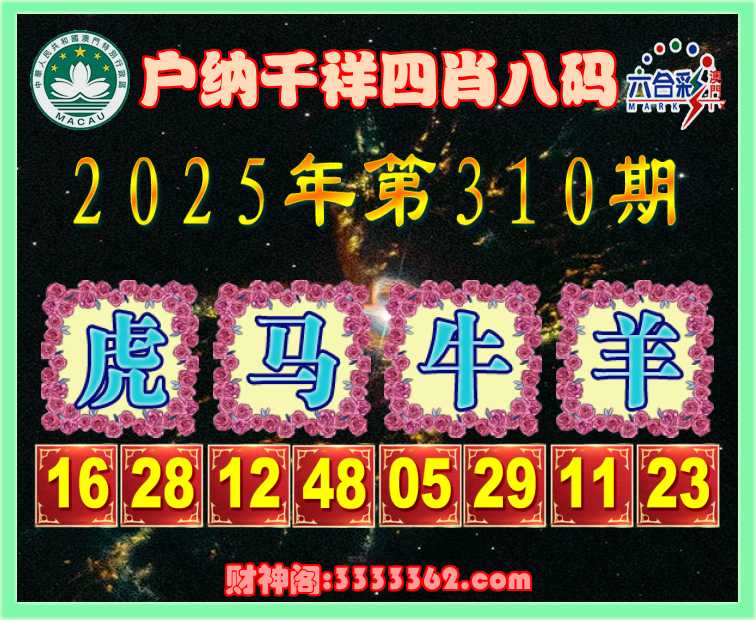 310期:《户纳千祥》 🏇四肖八码🏇【马牛羊】开:虎16