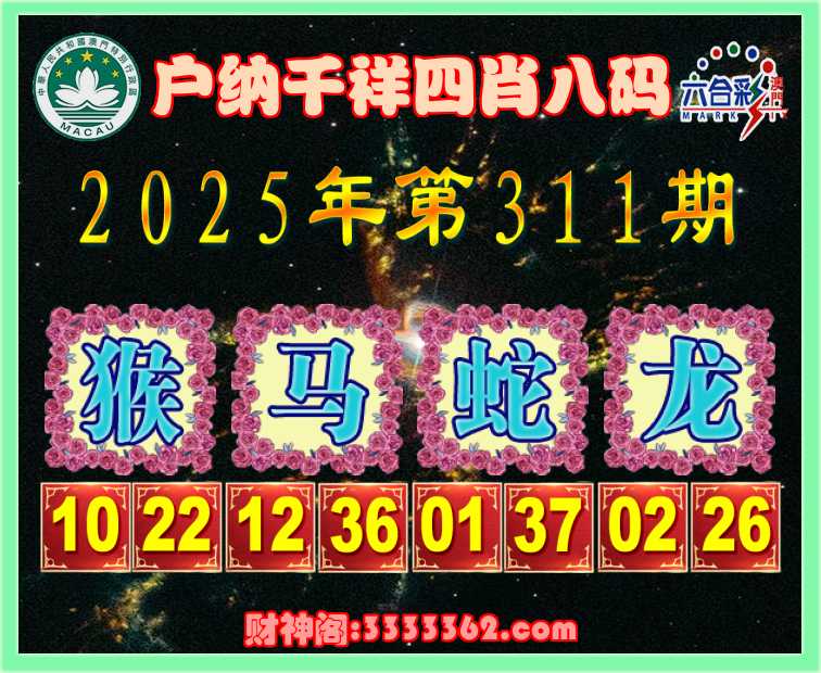 311期:《户纳千祥》 🏇四肖八码🏇【猴马龙】开:蛇37