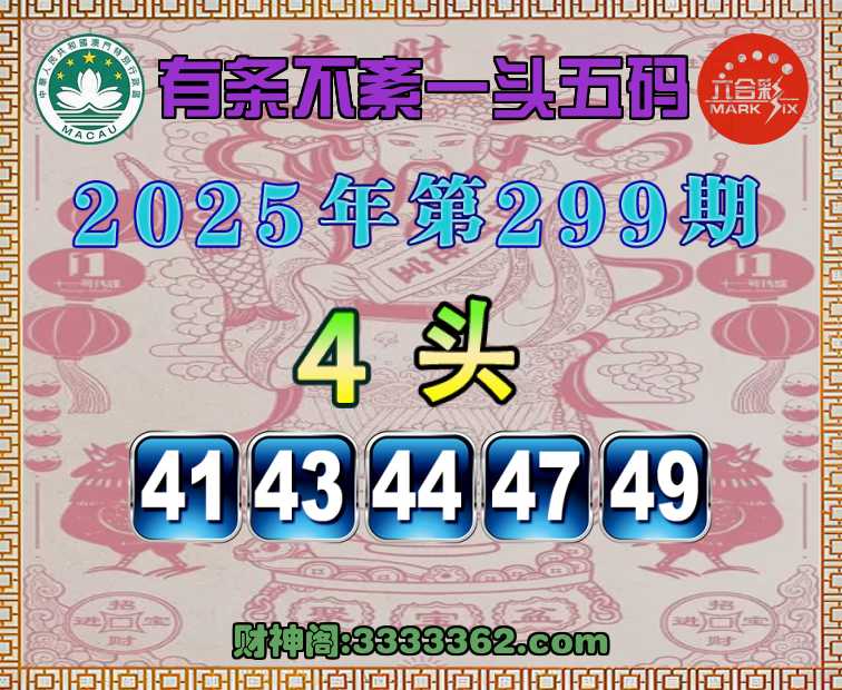 299期:『有条不紊』 🐓一头五码🐓【4头主:41.43.44.47.49】开:49
